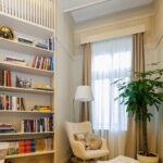 O altă provocare a venit în decorarea pereților încât să nu lase impresia că nu se mai ”termină” și să marcăm linia la care se termină mobilierul. Având în vedere că înălțimea este de aproape 4m am optat pentru niște profile decorative la comandă întrucât dimensiunile necesare erau mult mai mari decât cele pe care le găsim cu ușurință în comerț. Acestea au fost amplasate în toate încăperile pentru a constitui un element de unitate între încăperi. Între ele și cornișele decorative am amplasat un riflaj, împreună creând un brâu generos și elegant care te poartă vizual de la holul de intrare până în living.